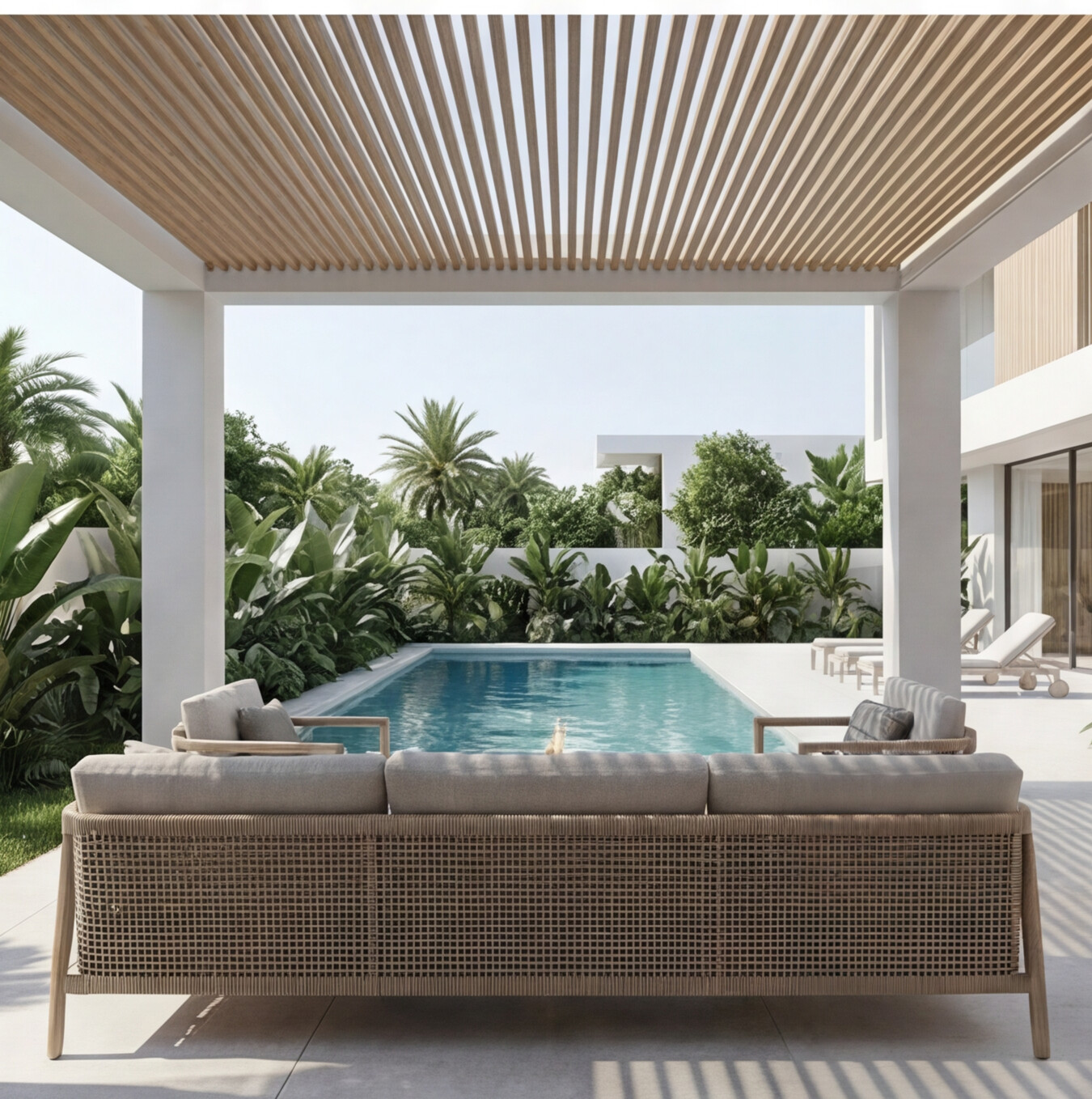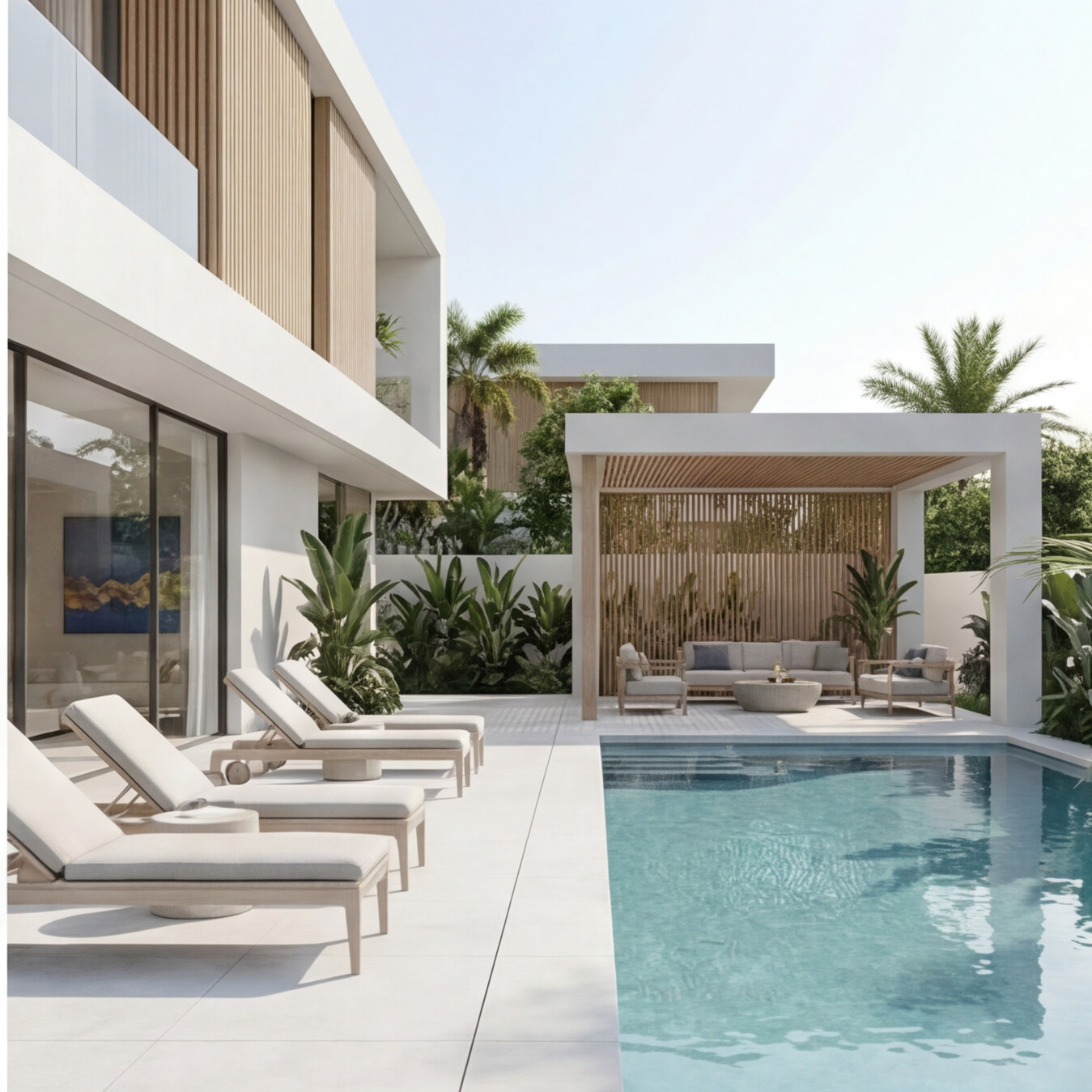 This modern North Coast villa is designed as a seamless blend of luxury, comfort, and coastal elegance. Clean architectural lines, expansive glass façades, and warm natural textures create a light-filled environment that connects indoor and outdoor living. The layout flows effortlessly from refined living spaces to private terraces, landscaped gardens, and a tranquil pool area, offering panoramic views and a sense of open-air serenity. Every detail reflects a contemporary lifestyle—where minimal design meets premium living in a sophisticated seaside retreat.