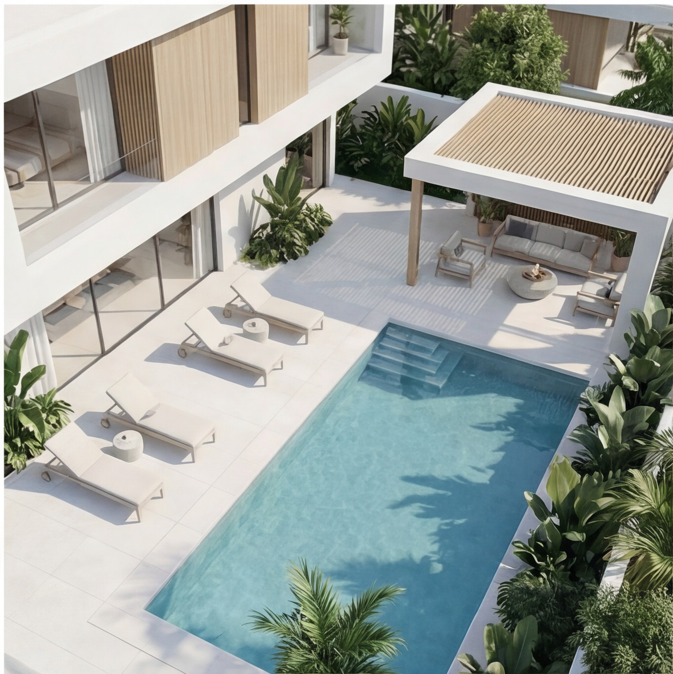 This modern North Coast villa is designed as a seamless blend of luxury, comfort, and coastal elegance. Clean architectural lines, expansive glass façades, and warm natural textures create a light-filled environment that connects indoor and outdoor living. The layout flows effortlessly from refined living spaces to private terraces, landscaped gardens, and a tranquil pool area, offering panoramic views and a sense of open-air serenity. Every detail reflects a contemporary lifestyle—where minimal design meets premium living in a sophisticated seaside retreat.