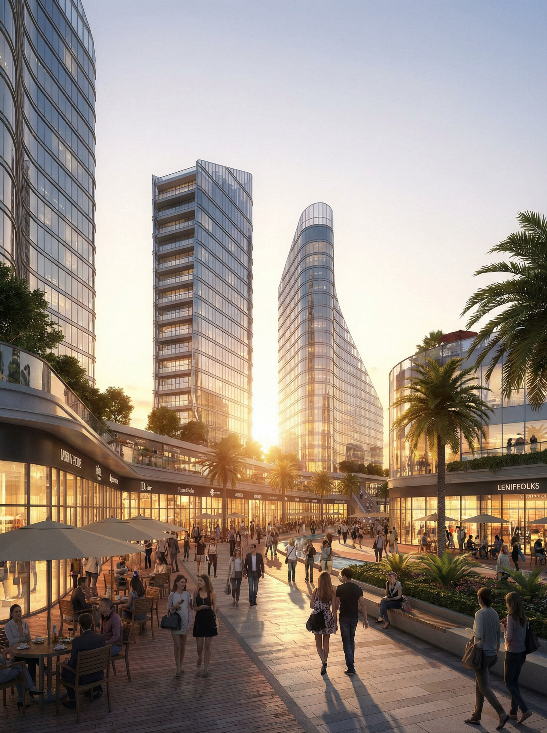 GDR Complex is a contemporary commercial, office, and hotel mixed-use development designed to create a dynamic urban destination. The project integrates retail spaces, modern office environments, and premium hospitality functions within a fluid architectural composition. The design features iconic curved forms, transparent glass façades, and a vibrant pedestrian spine enriched with landscaped areas and water features, enhancing user experience and connectivity. Thoughtfully planned layouts ensure functionality, natural daylight, and visual comfort across all components. GDR Complex represents a refined balance between business, commerce, and hospitality, redefining modern urban development.